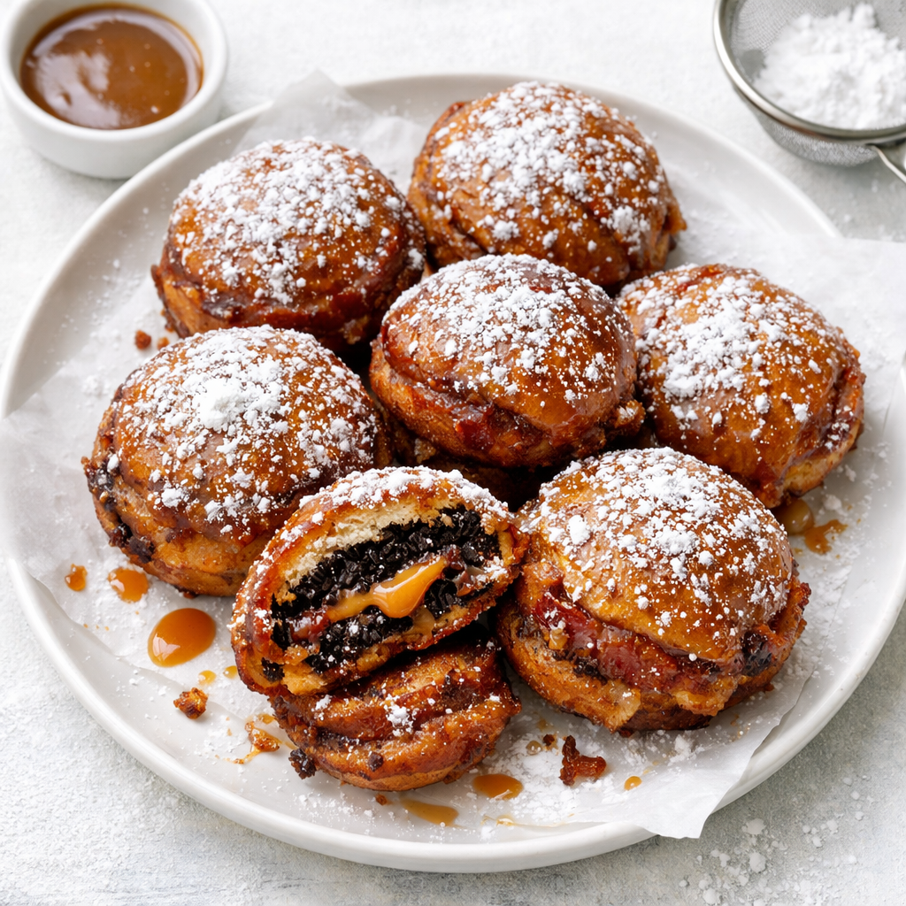 Intro: Over the Top Oreos are not for the faint of heart. These unapologetically indulgent treats start with a Nutella-stuffed Oreo, get deep-fried twice in pancake batter, injected with peanut butter and caramel, wrapped in crispy bacon, and finished with a glossy candy-style glaze and a dusting of confectioners’ sugar. Sweet, salty, crispy, gooey, and […]
